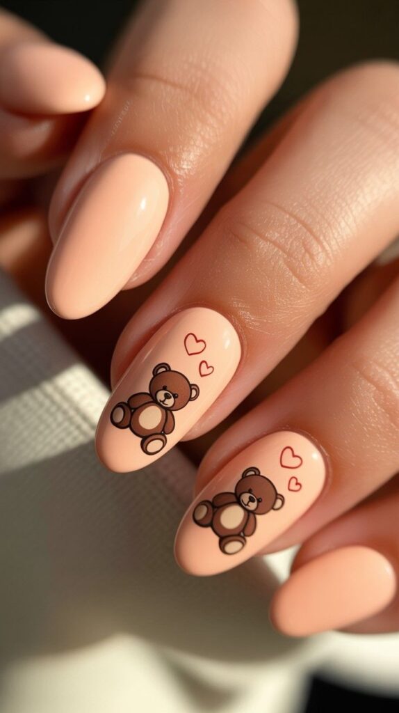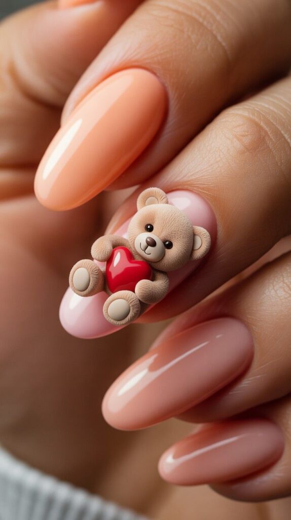 7) Peach & Cartoon Teddy Heart Accent