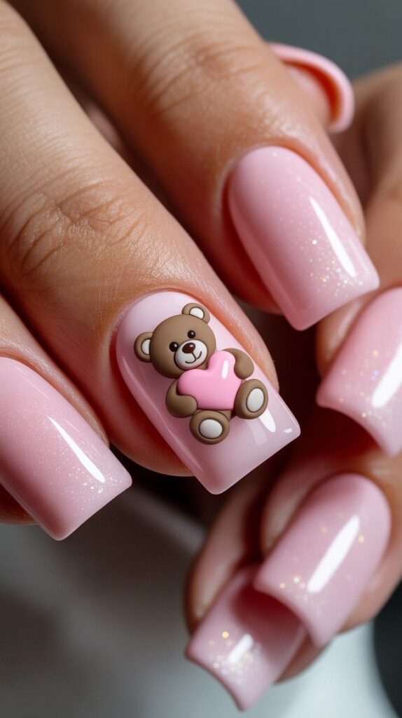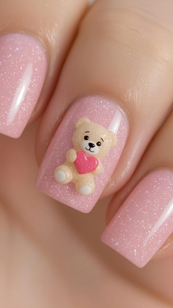 9) Pink Glitter & 3D Teddy Heart Accent