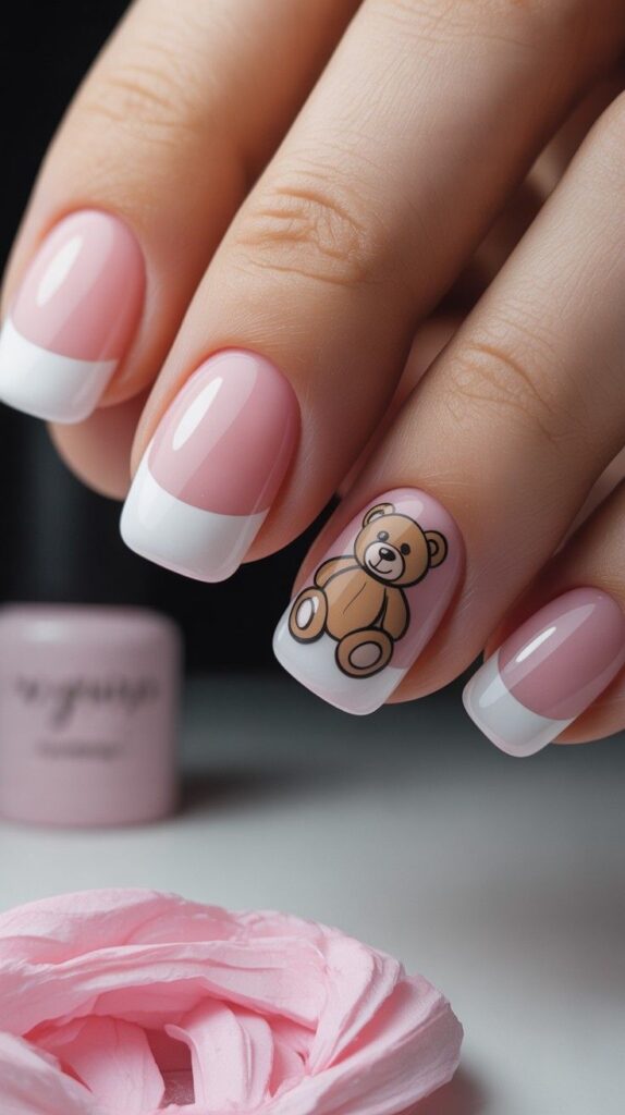 10) Pink & White French Tip Teddy Accent