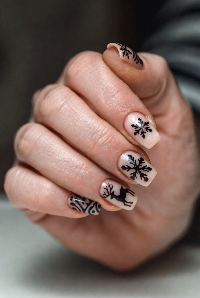 14) Nude Base with Black Reindeer & Snowflake Accents