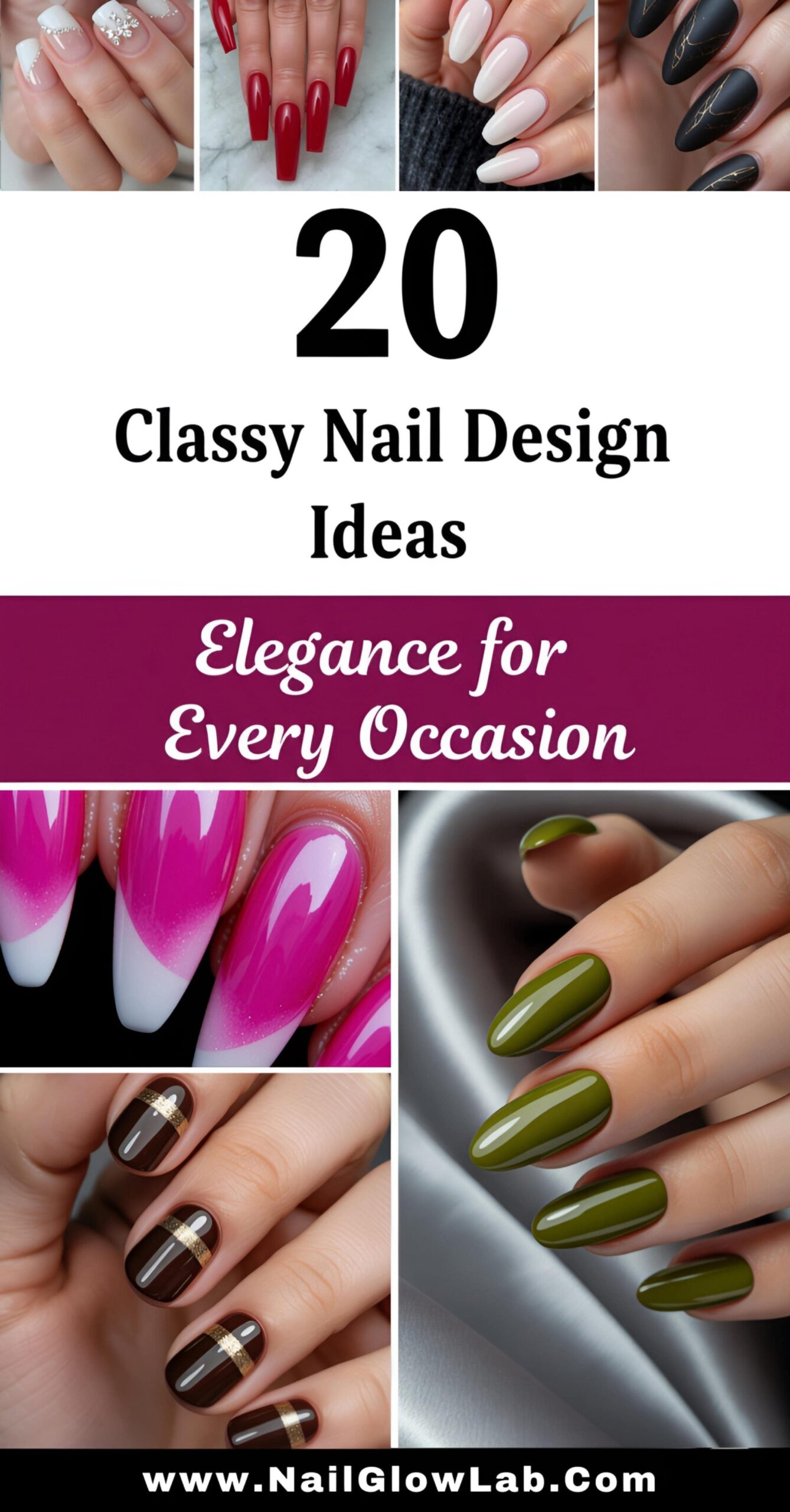 These 20 classy nail designs 2025 prove that true style isn’t loud — it’s intentional, elegant, and unforgettable. From glossy solids and golden accents to delicate florals and modern geometrics, there’s a look here for every woman who values grace, confidence, and timeless beauty. Your nails don’t have to shout to be seen — they just need to be perfectly you. Save this post for inspiration and visit Nailglowlab.com for more trendy nail designs. Which classy look will you wear first? Share your favorites below!