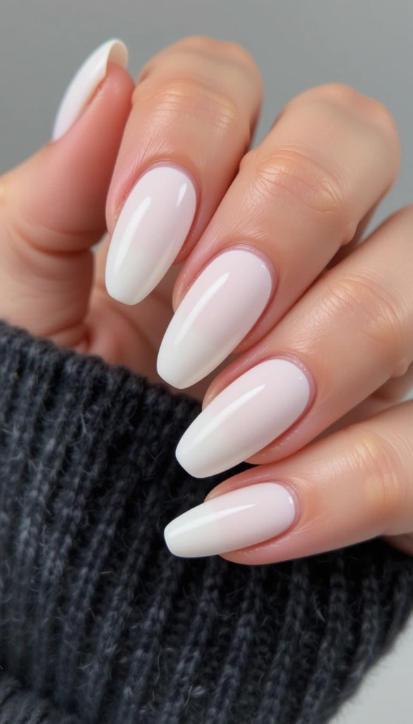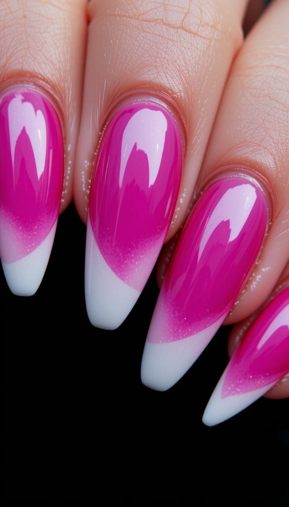 A vibrant pink base fades into white at the tips. The smooth gradient adds a soft, feminine flair to the sleek design.