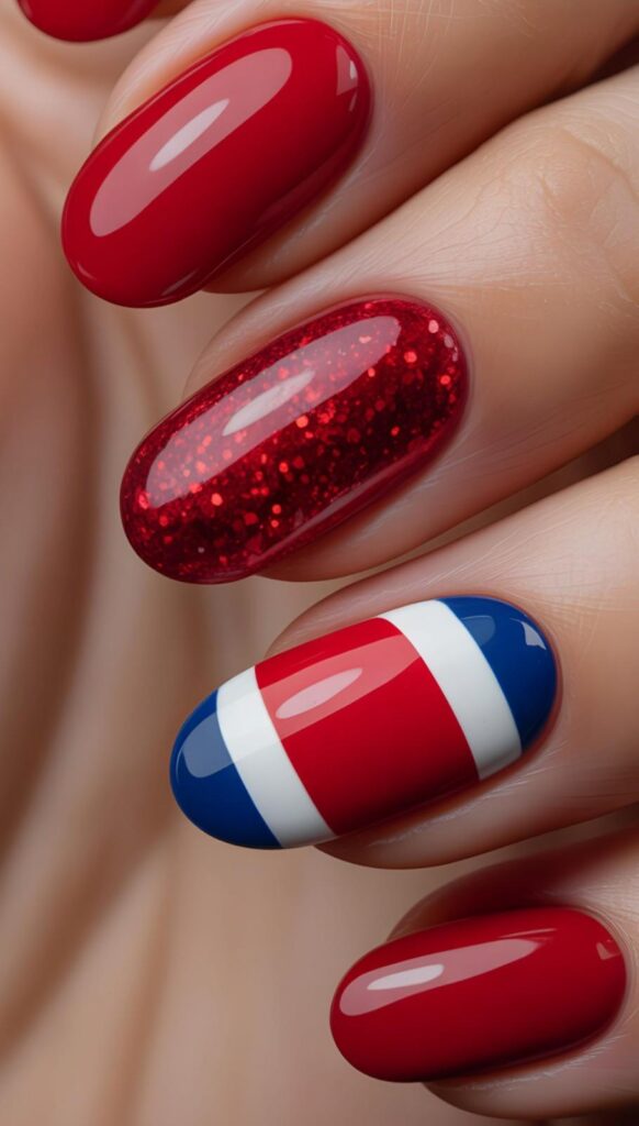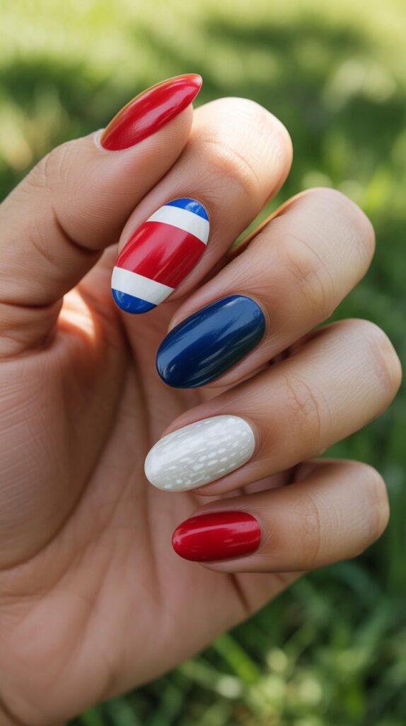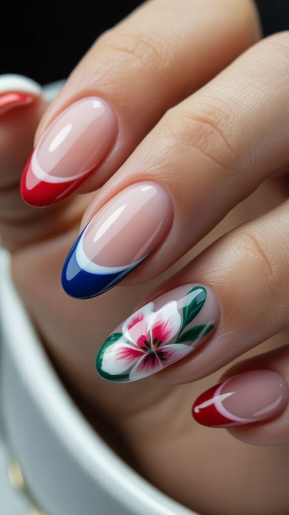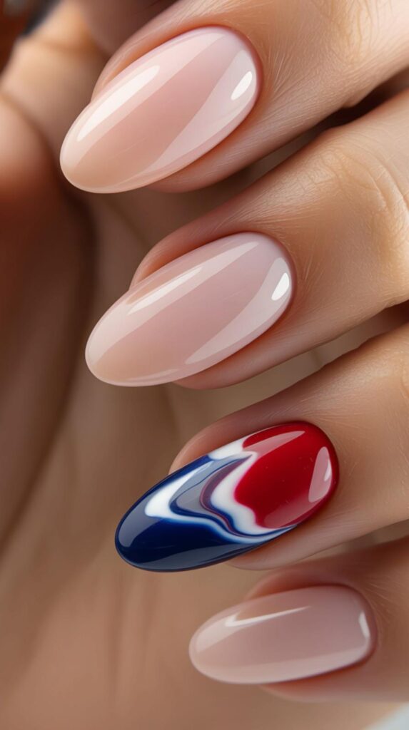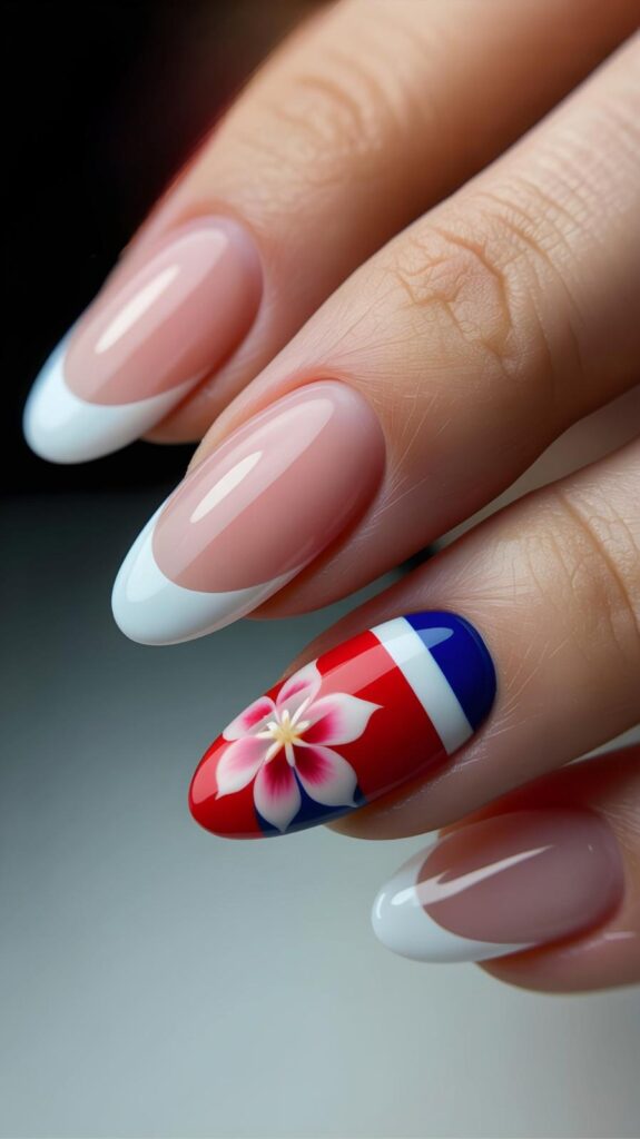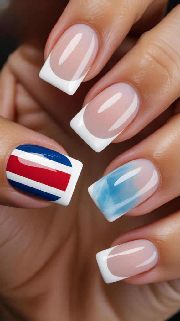 7) Nude & Flag French Tip Accent
