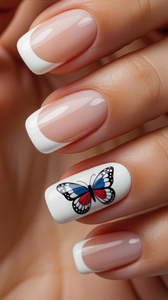 18) Nude & Flag French Tip Accent