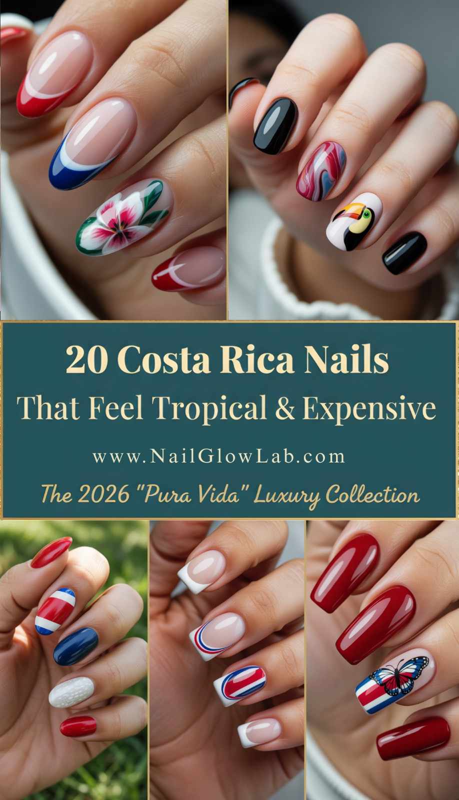 Costa Rica isn’t just a destination — it’s a mood. Lush rainforests, vibrant wildlife, sun-kissed beaches, and the bold red, white, and blue of its flag. Whether you’re drawn to toucans, butterflies, mermaid scales, or the national emblem — this collection is made for you. From sculpted 3D flowers to minimalist flag stripes, glittery ocean waves to playful polka dots — these 20 Costa Rica Nail Designs are here to match every adventure, from jungle hikes to beachside cocktails.
