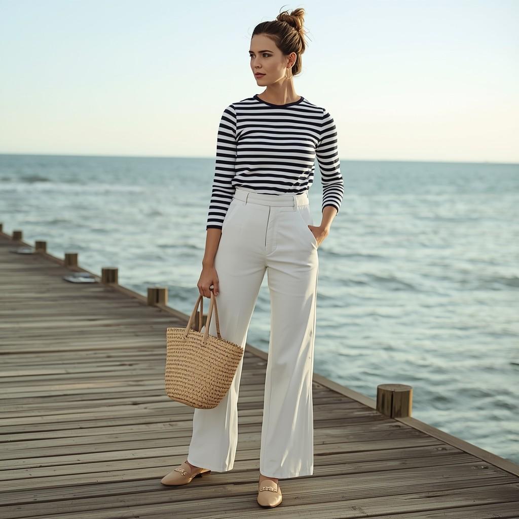 18) Classic Breton Knit & Wide-Leg Whites