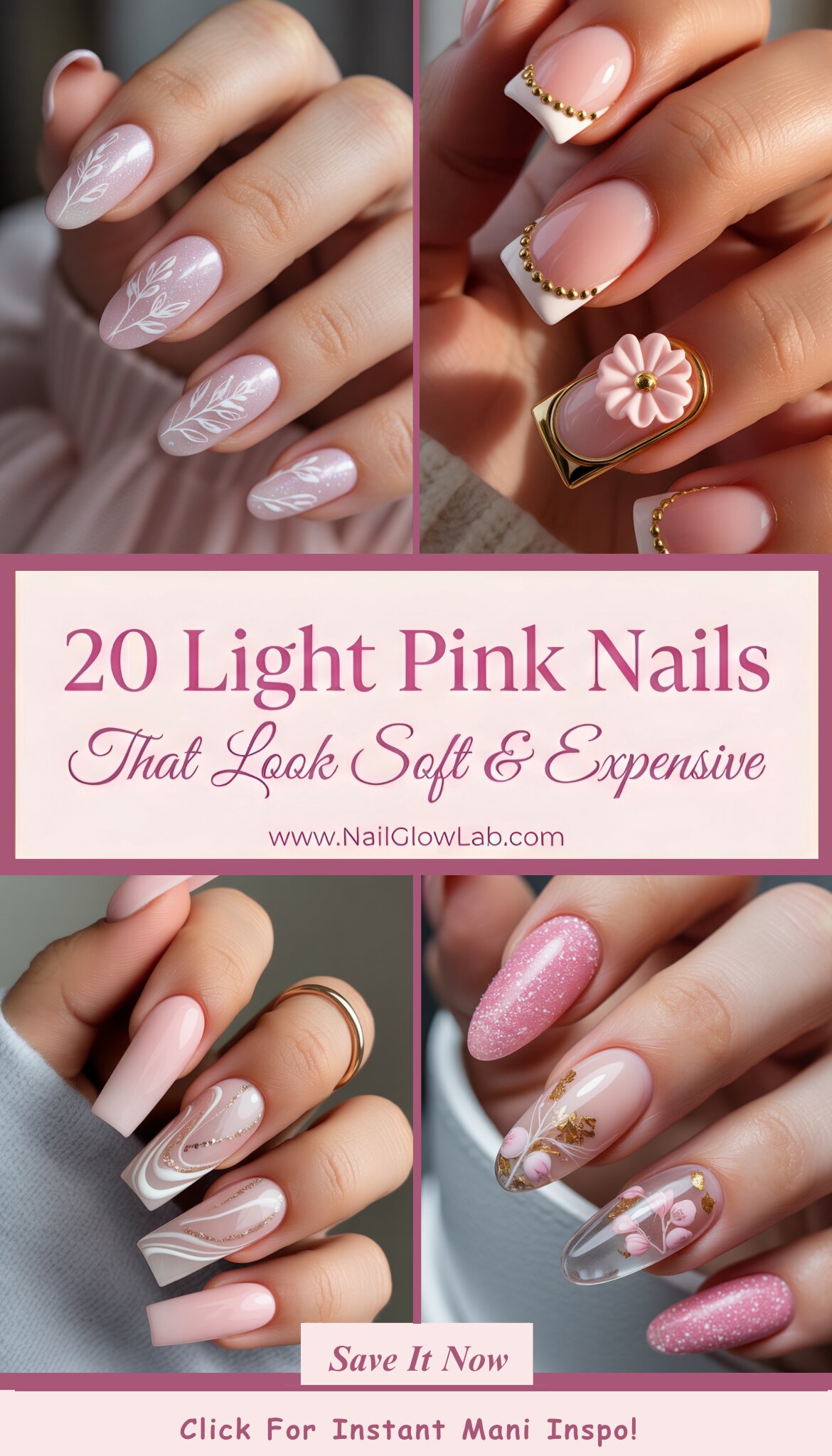 In 2026, light pink nails have evolved beyond “pretty” into powerful: dewy translucents with micro-embellishments, sculpted florals in gold bezels, abstract white swirls, ombré French tips, and tactile 3D charms—all rendered in wearable shapes with glossy, satin, or matte finishes that honor both elegance and everyday life.