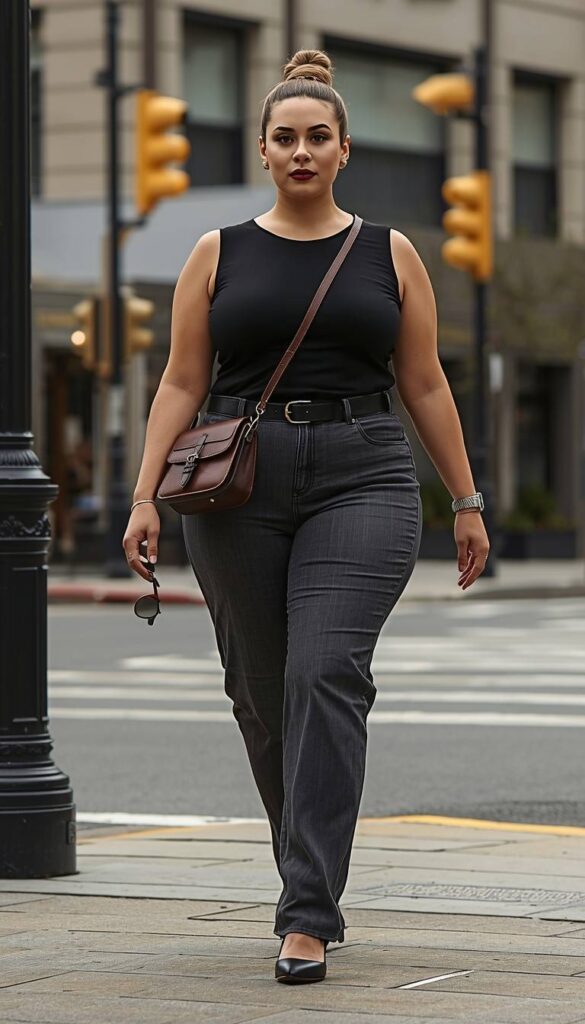 18) Sleek Black Tank & Charcoal Trousers in City Crosswalk