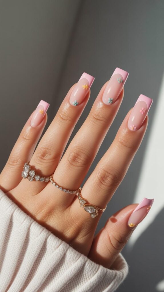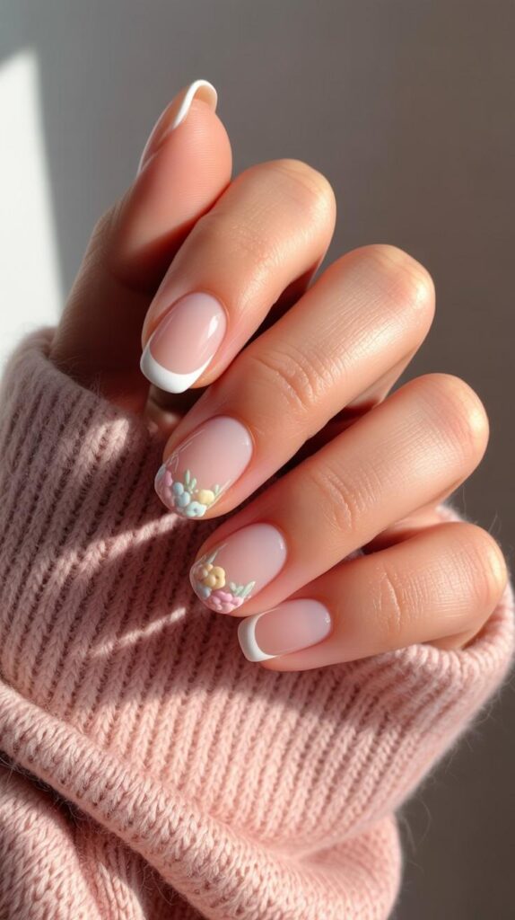 5) French Tips with Pastel Floral Accents