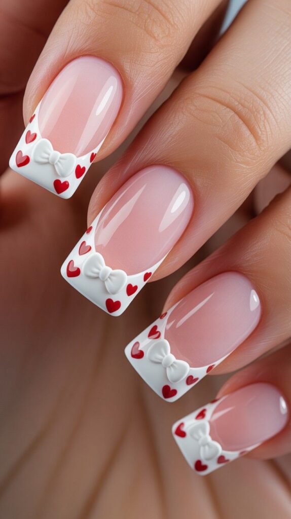 5) 3D Bow & Heart French Tips