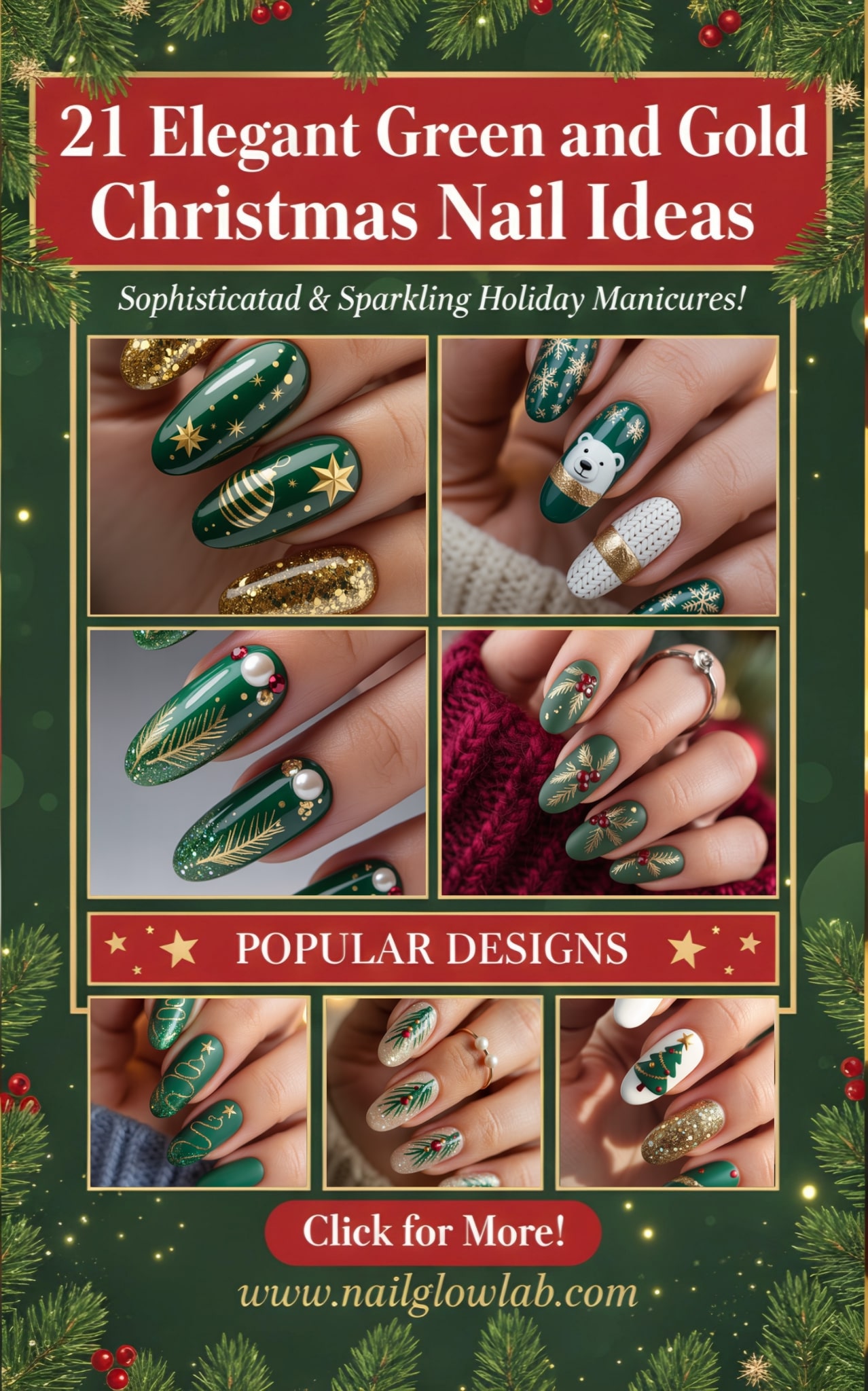 There you go — 21 ways to wear green & gold Christmas glam without ever feeling too flashy, too busy, or too “been there.” Whether you’re team matte or glossy, minimalist or full-on glam, there’s a design here that’ll match your vibe — and your sweater. Save your fave, screenshot the steps, or take the whole collage straight to your nail tech. ✨