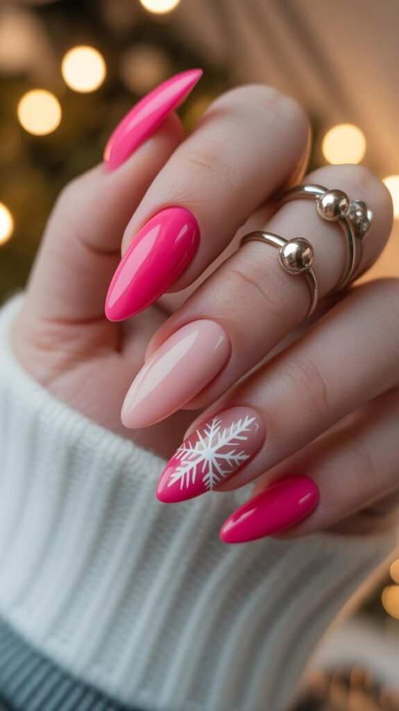17) Bold Snowflake & Pink Glam