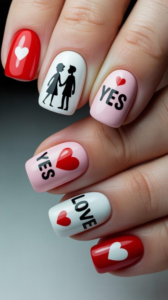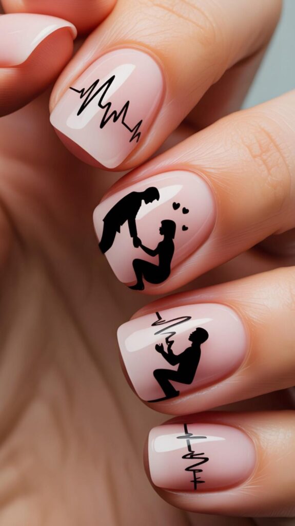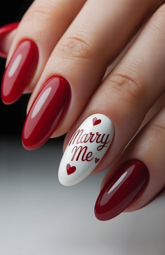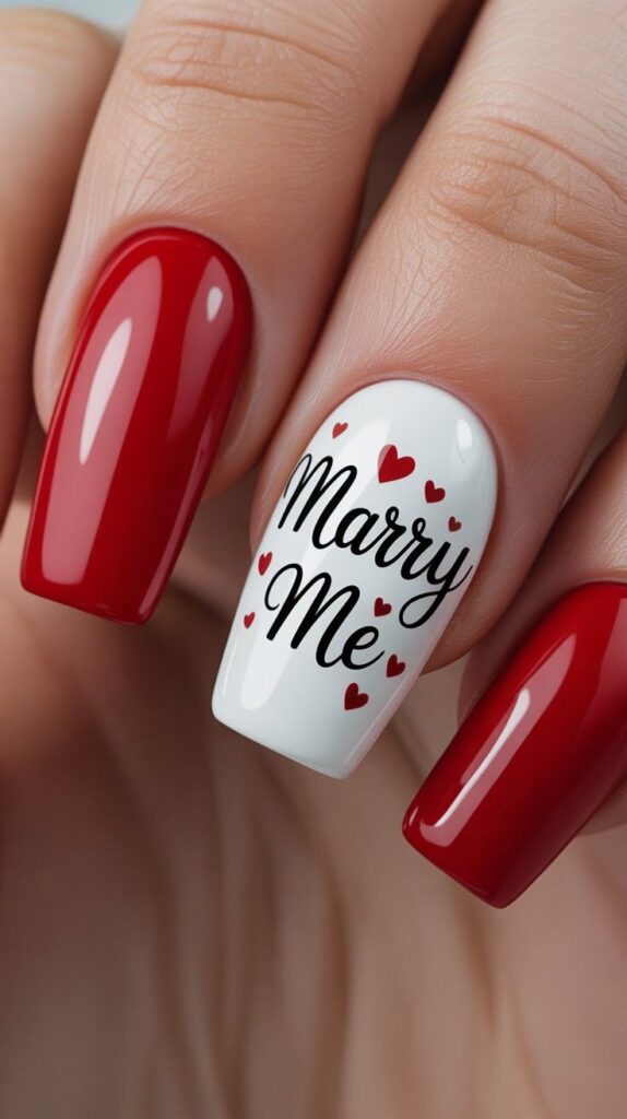 Propose Day isn’t just about rings and roses — it’s also the perfect time to let your nails tell the story of love, commitment, and forever. Whether you’re planning a surprise proposal, celebrating your engagement, or simply treating yourself to a little romance — this collection is made for you. From bold “Marry Me” scripts to delicate heartbeat lines, playful cartoon couples to glittering diamond accents — these 21 Propose Day nail designs are here to match every mood, from quiet whispers to grand declarations.