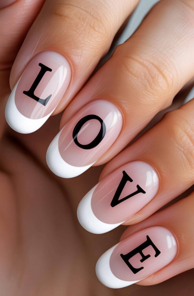 Clean nude polish meets bold black script spelling ‘LOVE’ — modern, chic, and perfect for showing off your winter boots. The matte-to-glossy gradient adds depth, while the minimalist base lets the design shine. Paired with real snowflakes, this design whispers ‘minimalist magic’ with every step.