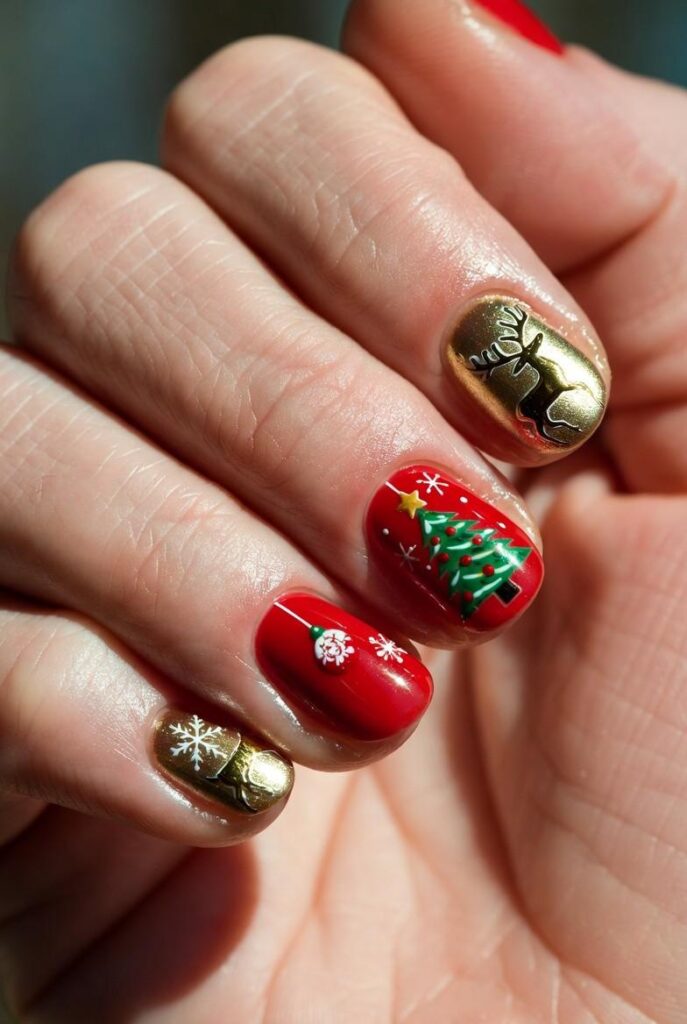 Perfect For: Christmas morning, family photos, or when you want your nails to scream festive without being matchy-matchy — bonus points if you’re wearing red lipstick.