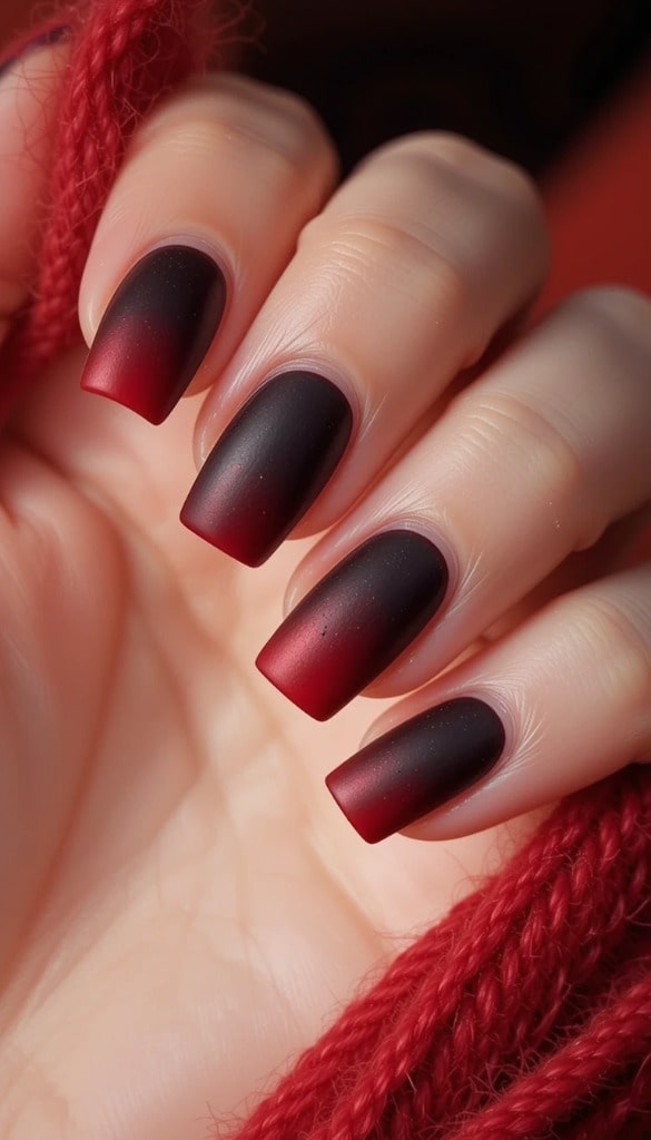 14) Matte Burgundy Ombre Nails – Moody Glam