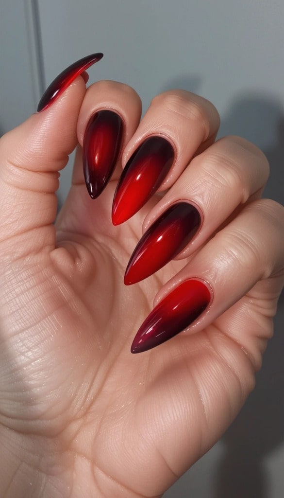 17) Glossy Red Ombre Nails – Bold & Dramatic