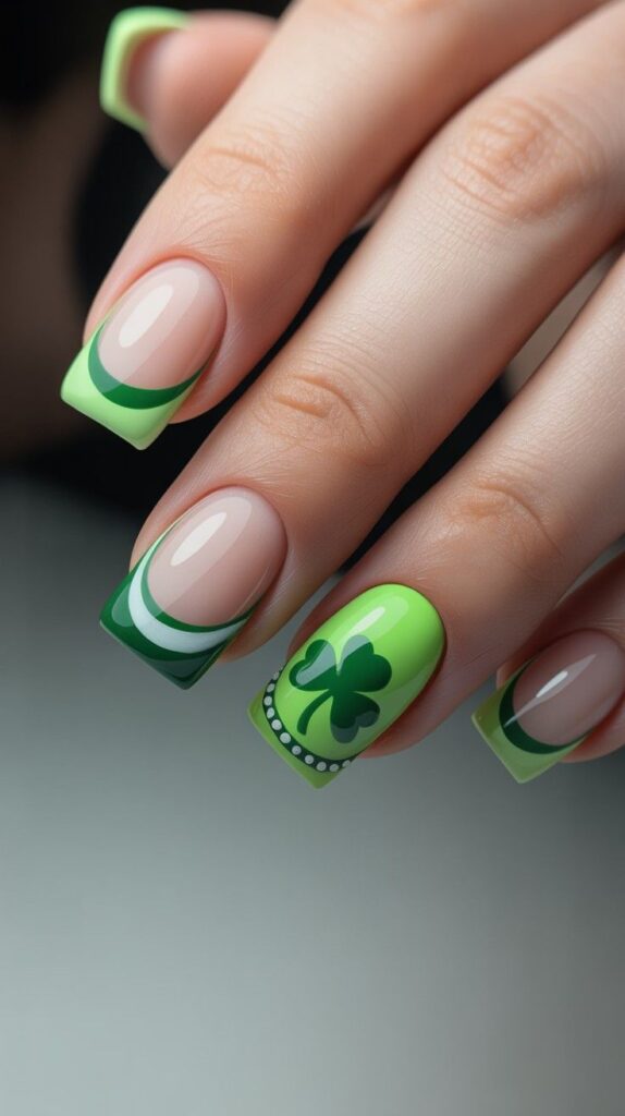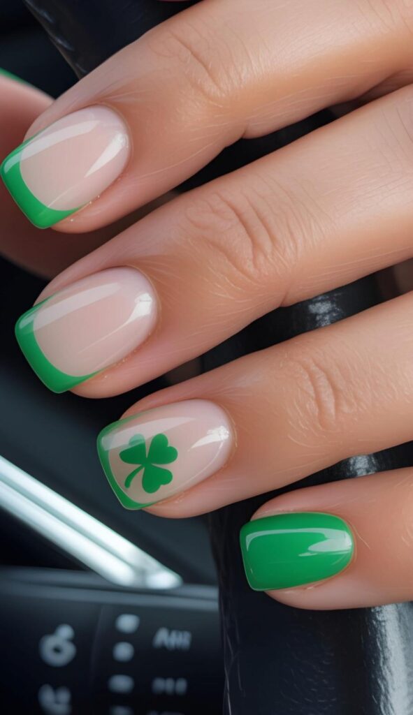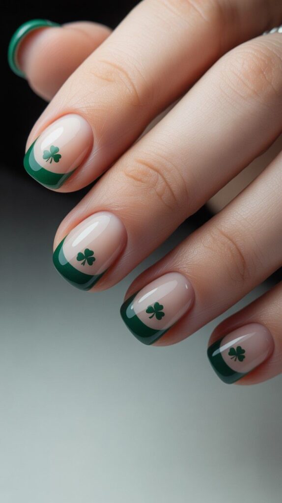 6) Nude French with Shamrock Tips