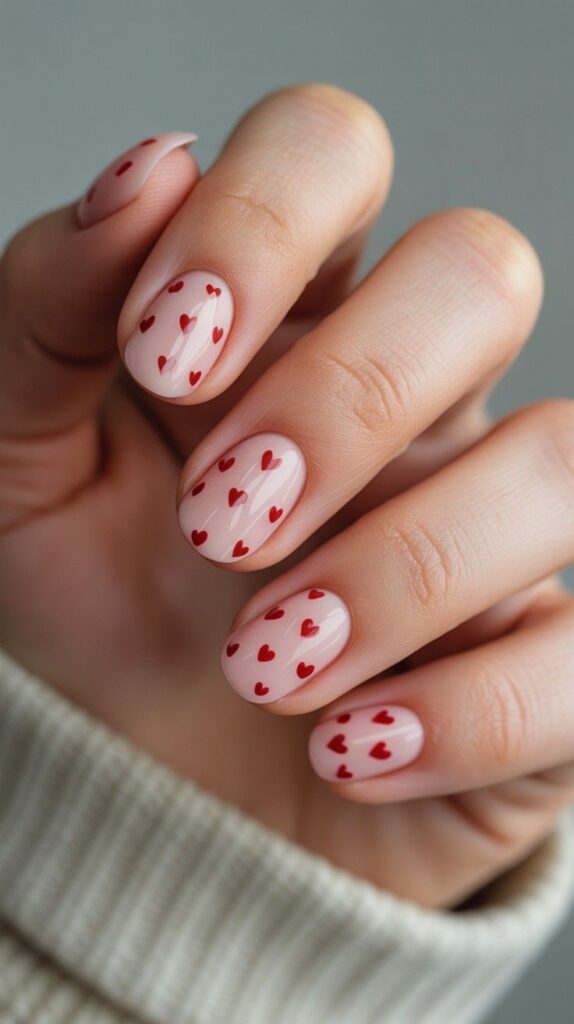 5) Blush Base & Mini Red Heart Pattern