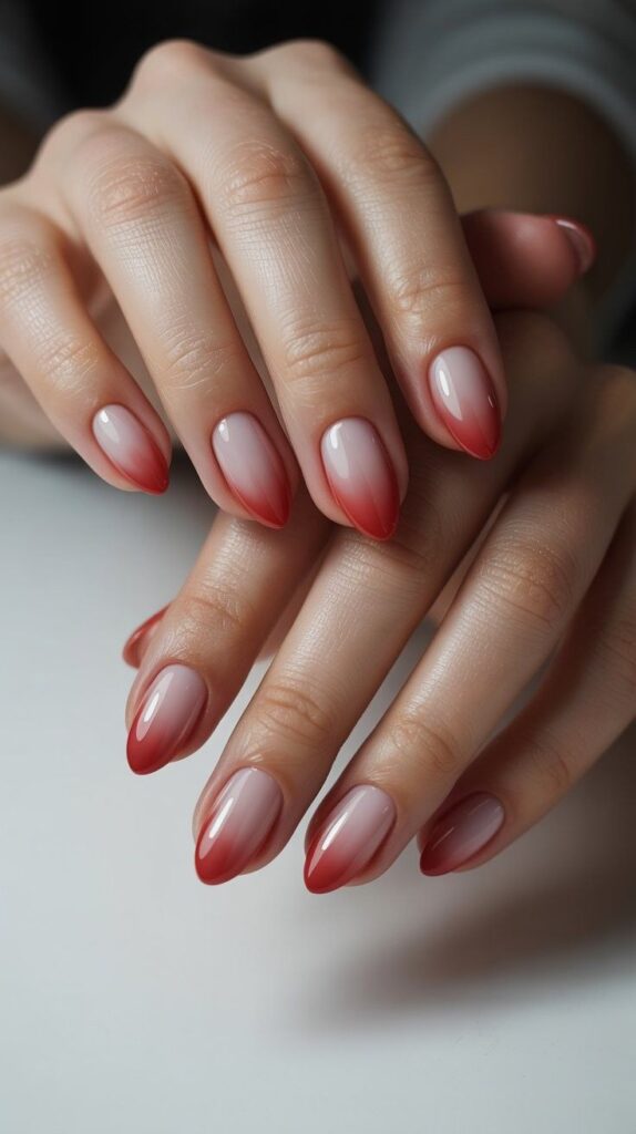 22) Blush-to-Red Ombre Short Nails