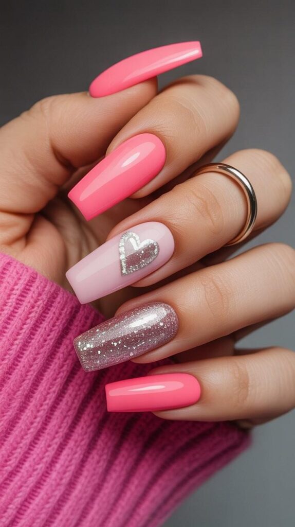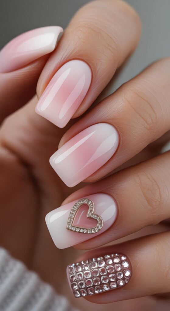14) Ombre Pink & Glitter Heart Accent