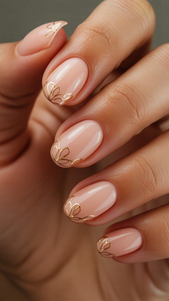5) Nude-Chrome with Gold Line-Art Botanicals