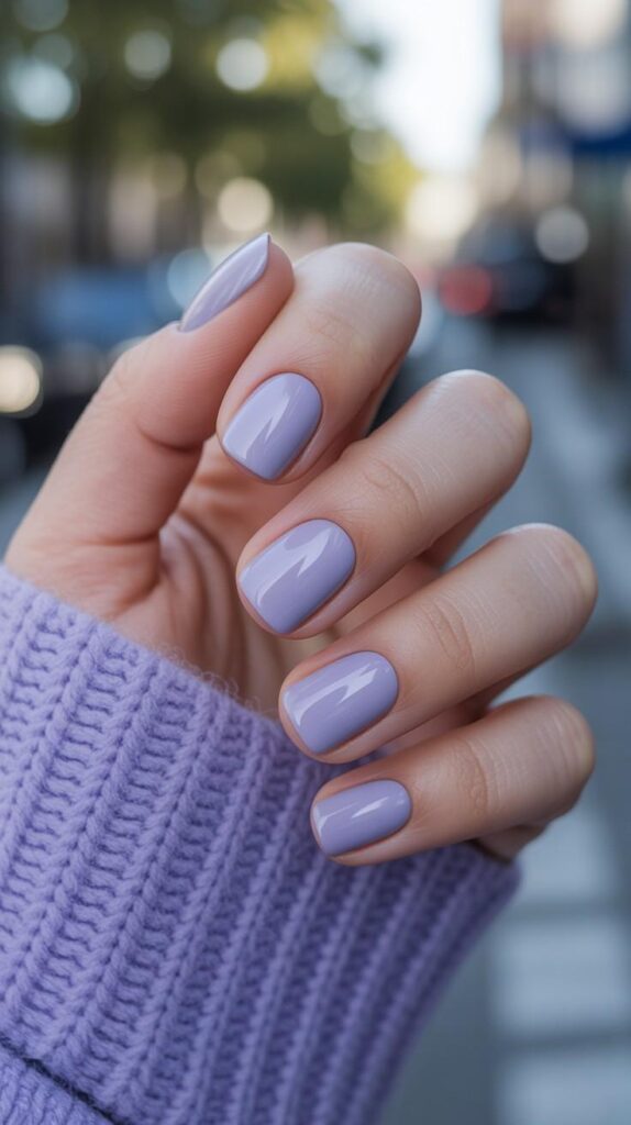 Smooth matte-lavender chrome short square nails—soft, reflective, and full of serene sophistication. The chrome finish adds depth without glare, and the crisp square shape ensures modern elegance and durability. Calm, confident, and utterly wearable—like twilight in polish form.
