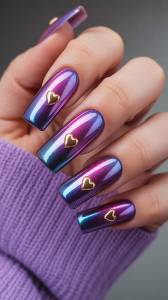 12) Violet Ombré Chrome with Gold Hearts