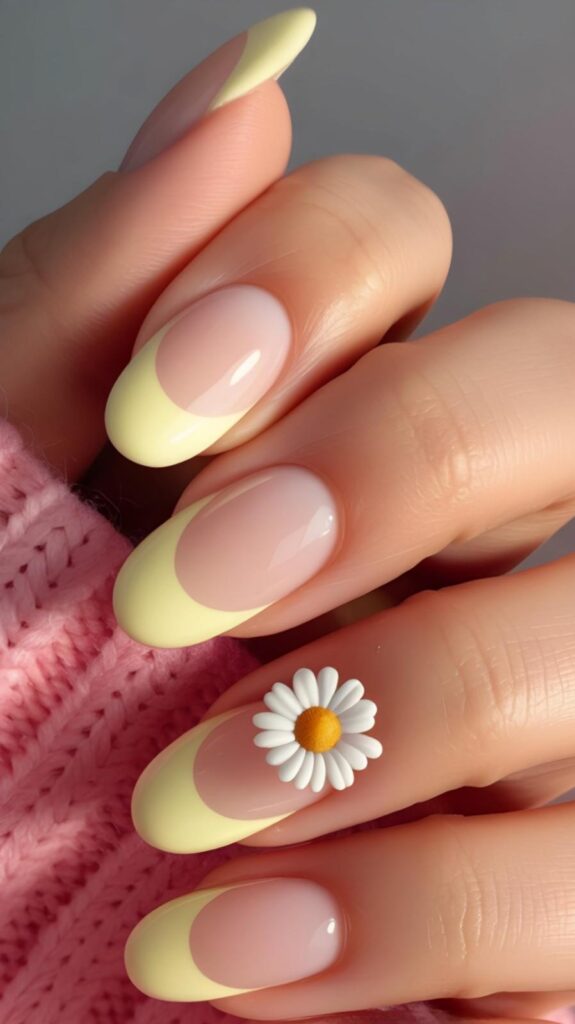 23) Lemon French Tips with 3D Daisy