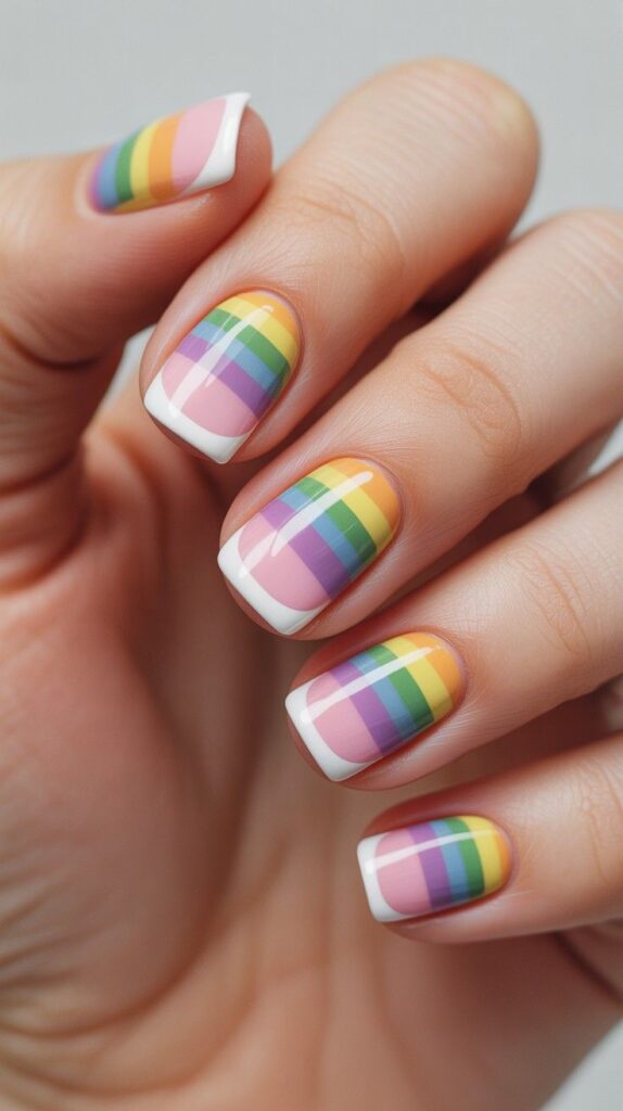 6) Rainbow Stripes on French Tips