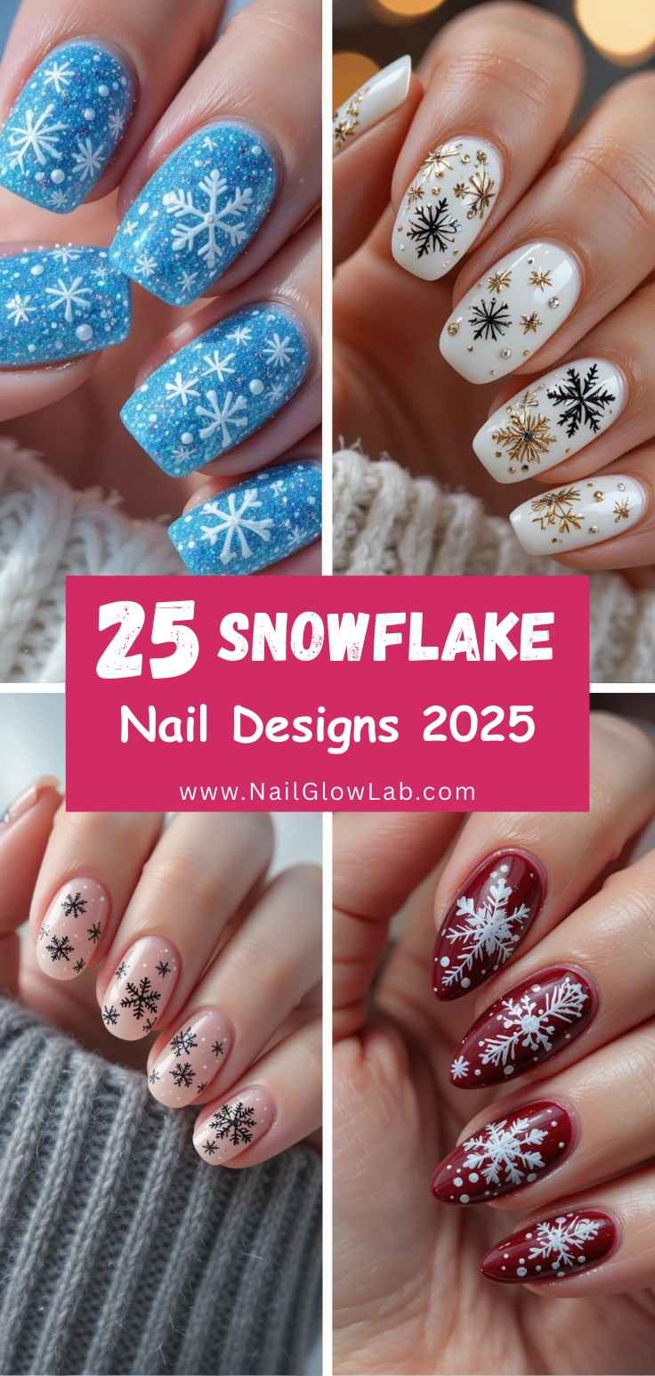 Snowflakes are nature’s reminder that no two moments are alike — and neither are you. Whether you’re drawn to the bold contrast of red and white, the dreamy hush of lavender and silver, or the quiet confidence of nude with a single silver flake, these 25 designs celebrate your kind of winter magic.So go ahead — wear the season like a poem. Let your nails catch the light like frost on a windowpane. And remember: elegance isn’t about perfection. It’s about presence. Joy isn’t about extravagance. It’s about attention — to the little things that make your heart pause and smile.Which snowflake will you choose? Save your favorites to Pinterest, tag us in your wintry manicures, or share your own frosty twist below. ❄️And for more seasonal inspiration, visit NailGlowLab.com — where every nail tells a story.May your days be still, your nights be sparkly, and your hands always carry a little winter wonder. ✨🤍💙