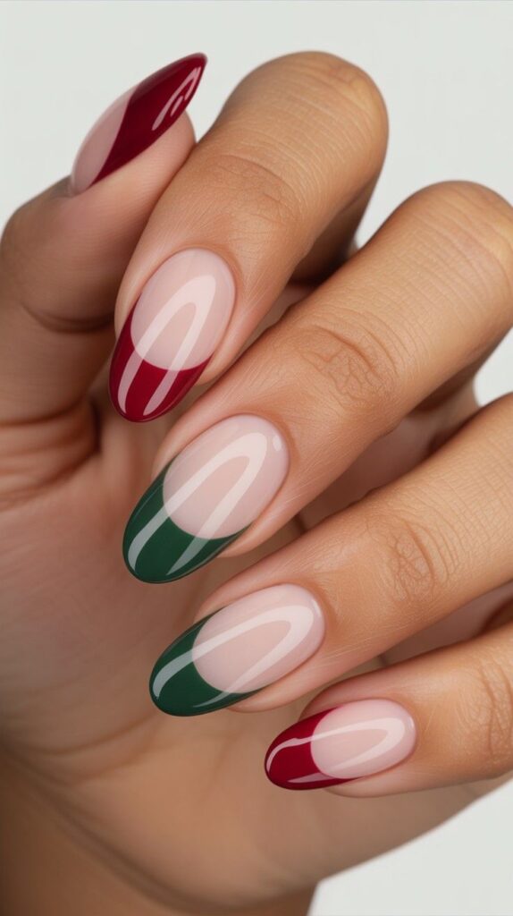 24) Red & Green French Tips with Matte Accent