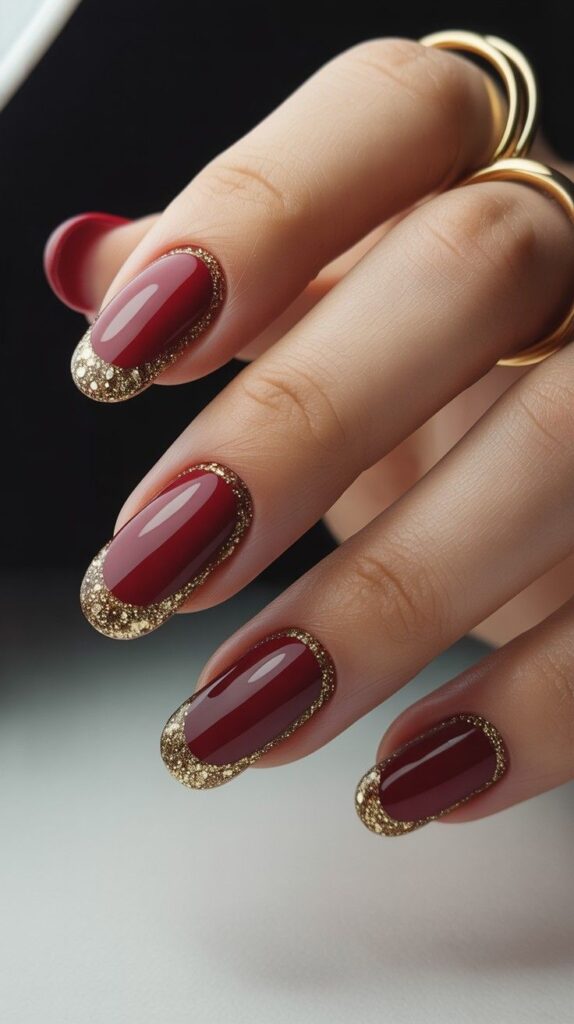 11) Glittery Red & Gold Tips with Matte Accent