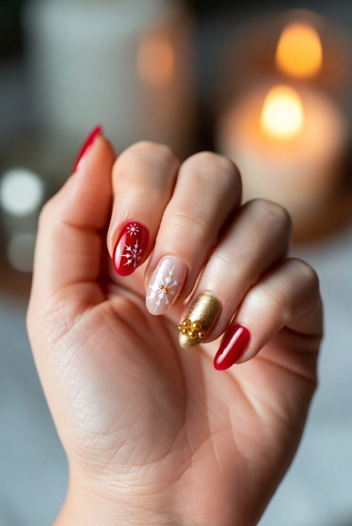 Perfect For: Holiday galas, elegant Christmas parties, or anyone who wants a unique, conversation-starting manicure that’s still unmistakably festive.