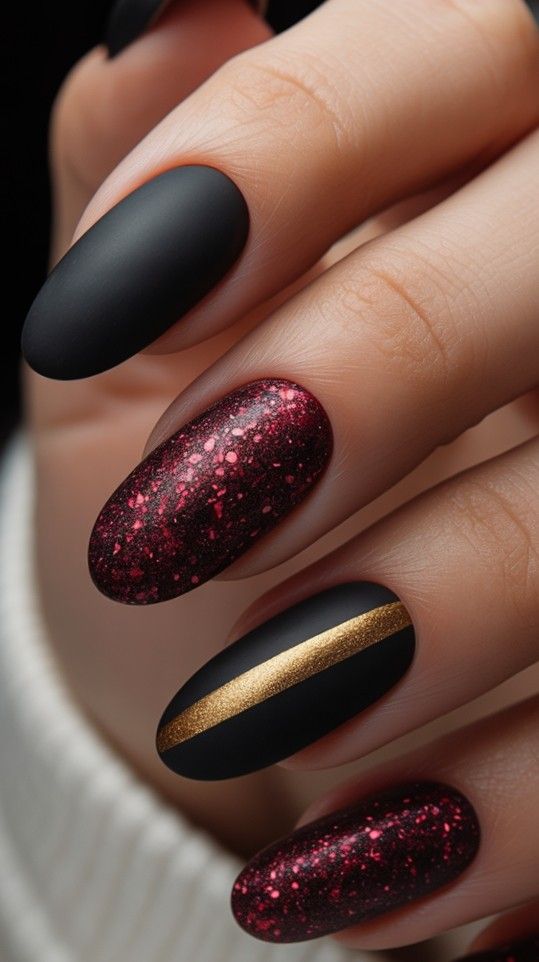 1) Matte Black & Glitter Red Mix