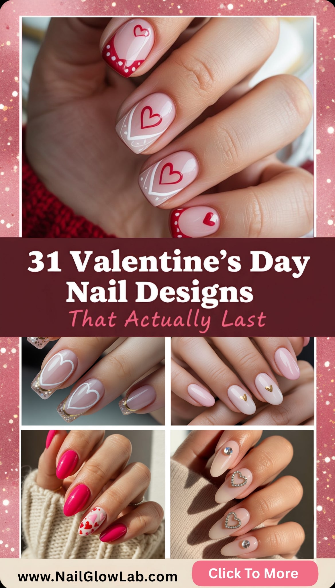 Valentine’s Day isn’t just about roses and chocolate — it’s a month of cozy sweaters, candlelit dinners, Galentine’s cheers, and quiet moments that whisper “I love you.” And what better way to celebrate than with nails that match the mood? From delicate hearts to bold burgundies, glittery gradients to coffee-inspired swirls — we’ve curated 31 dreamy, romantic, and totally wearable nail designs for every February vibe.
