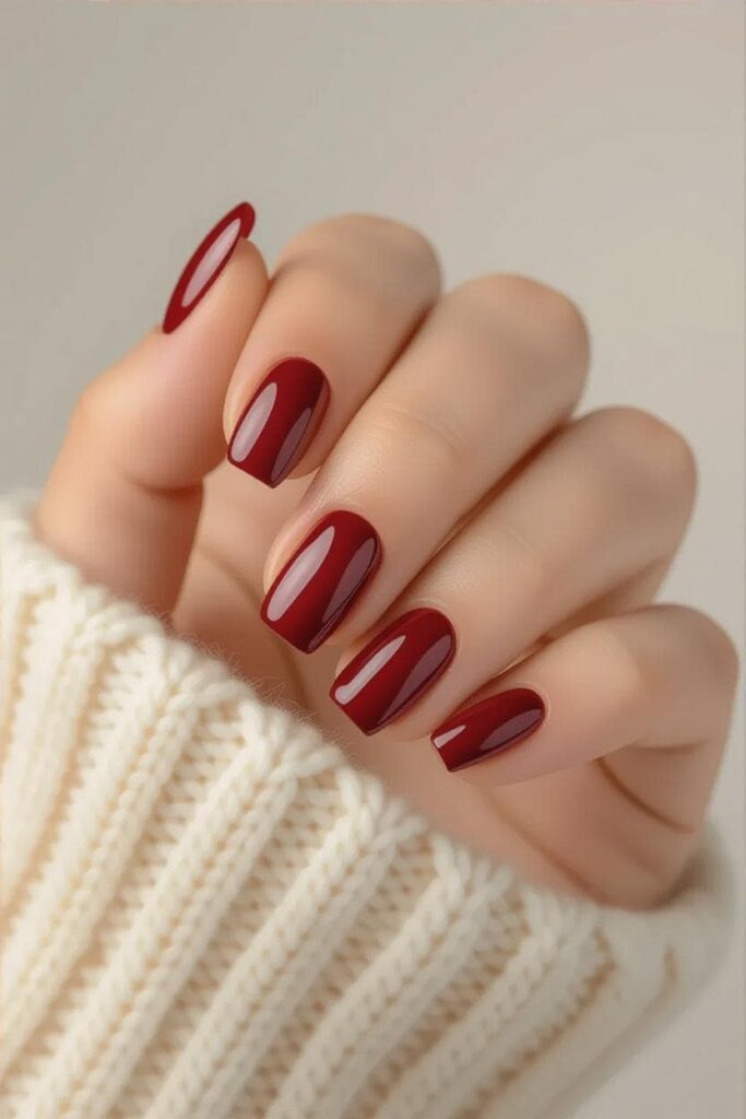 A rich, uniform crimson glossy polish covers every nail β smooth, elegant, and full of timeless autumn charm. The look is effortless, sophisticated, and perfect for those who love classic color without any fuss.