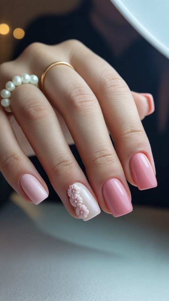 Perfect For: Office chic, journaling, or restrained intention.20: Nude Base with 3D Blossom Cluster